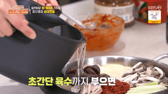 12. 육수를 붓고, 끓여줍니다.