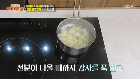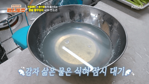 11. 감자가 익으면 건져내고, 삶은 감자 물은 따뜻하다 싶을 정도로 식혀줍니다.