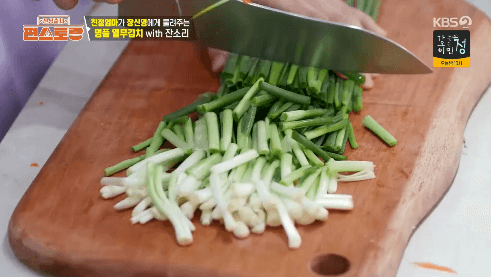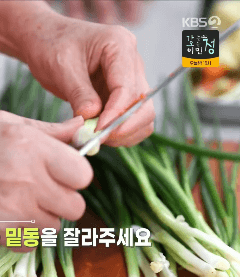 13. 쪽파는 밑동을 반 가르고, 듬성듬성 썰어줍니다.