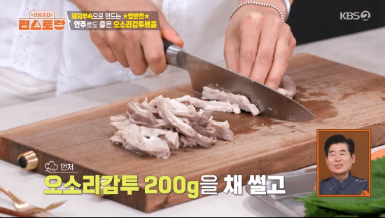 1. 오소리감투 200g을 채 썰듯 먹기 좋게 썰어줍니다.