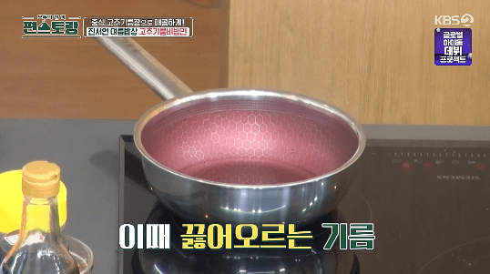 7. 프라이팬에 식용유 4큰술을 넣고 끓여줍니다.