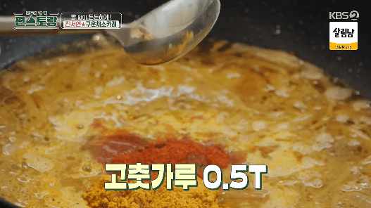 12. 고운 고춧가루 1/2큰술을 넣고 저어가며 끓여줍니다.
