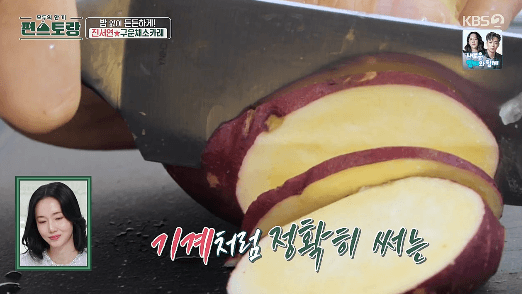 4. 고구마를 얇게 썰어줍니다.