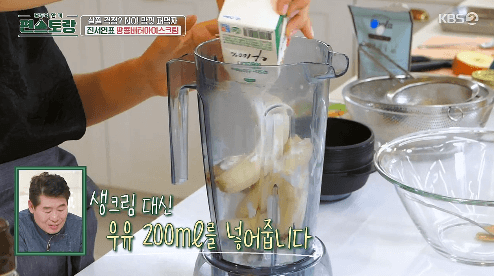 1. 바나나 6개, 우유 200ml를 믹서기에 넣어줍니다.
