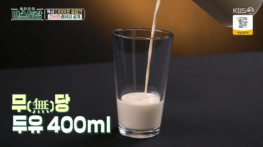 1. 컵에 무가당 두유 400ml를 따라줍니다.