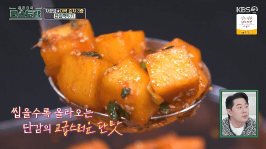 예전에는 배추나 무 같은 일반적인 채소로만 김치를 담았지만, 요즘은 과일로 김치를 담기도 합니다. 무엇으로 만들어도 김치는 참 맛있습니다. 이번 방송에서 차예련씨가 갈매기살 수육을 만들고 같이 먹으면 좋을 김치를 담근다고 합니다. 단감으로 이색적인 깍두기를 담는다고 하는데, 어떻게 담그는지 알아보겠습니다.