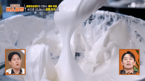 4. 반죽을 뒤집었을 때 흘러내리지 않을 때까지 휘핑해 줍니다.