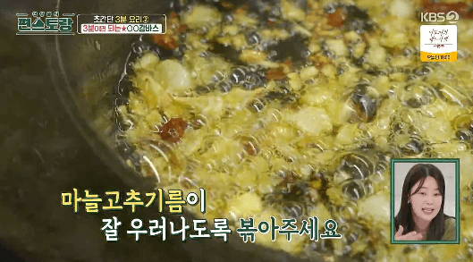 5. 마늘고추기름이 잘 우러나도록 볶아줍니다.